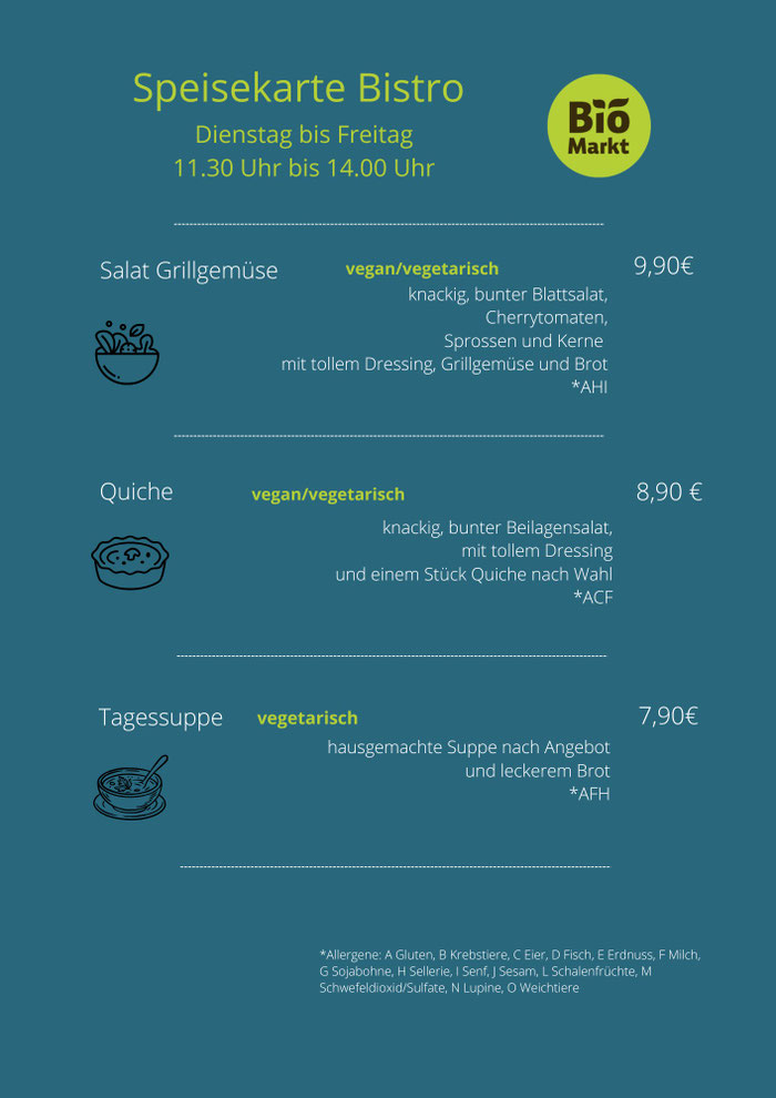 Unser Bistro ist täglich von 9 bis 18 Uhr geöffnet.